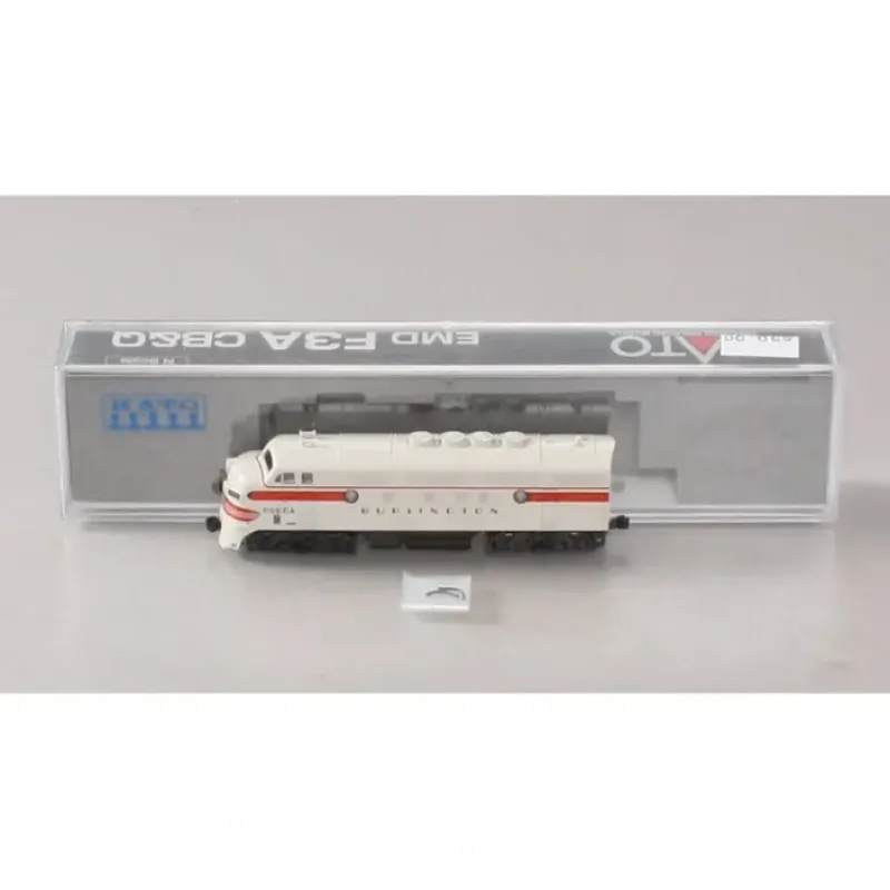 This is a Kato 1761313 N Chicago Burlington & Quincy F3A D. Headlight #9960A. Features: DCC friendly mechanism, A-unit LED has directional headlights and illuminated number boards, Locomotives have a powerful five pole motor with all wheel electrical pickup and blackened wheels, KATO magnetic knuckle couplers, Drop in DCC compatible with the Train Control Systems, K0D8 series and Digitrax DN163K0B.