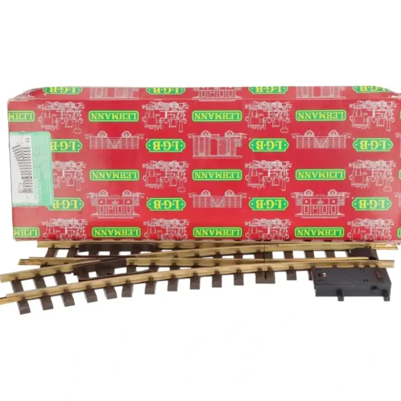 Here is an LGB 1615 G R3 22.5 Left Hand Remote Switch Turnout. Features include brass rails and plastic ties. It measures approximately 19 inches in length.