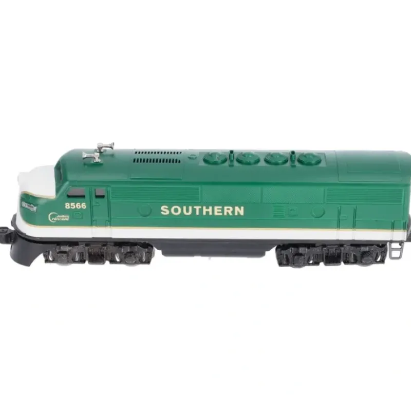 Here is a Lionel 6-8566 O Gauge Southern F-3 A Diesel Locomotive #8566 from 1975-76. It features a pullmor motor, e-unit, lights, and die cast trucks and an operating coupler on the front (the rear coupler is fixed). It matches the 8567 Dummy A Unit and 8661 B Unit.