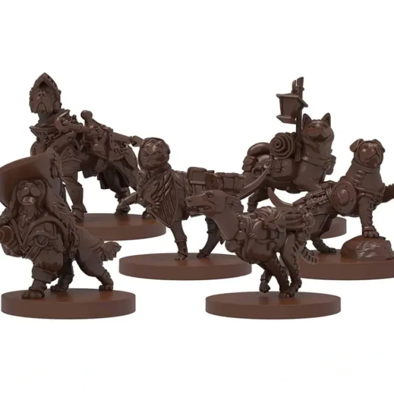 Meet another pack of pawesome adventurers in Dungeons and Doggies: Volume 3! Six new dog breeds have been given a fantasy class. Now, led by the brave Boxer paladin, Brianna, these miniatures are ready to embark on a quest against evil.