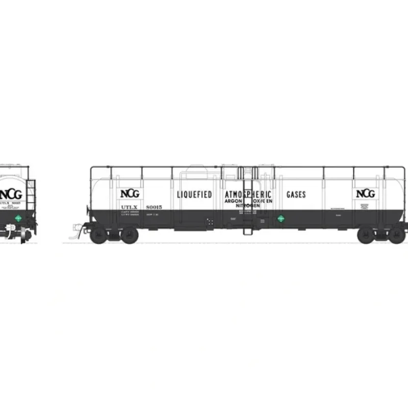 This is a Broadway Limited 6113 HO Scale NCG High-Capacity Cryogenic Tank Car – Ready to Run .Features: Beautifully Detailed and Accurately Modeled,Precision Paint, Color, and Lettering Schemes,Many Separately Applied Details including Hand Rails, ladders, brake wheel, roof walkway,Detailed Underbody,Composition: ABS body, Diecast Chassis,Wheel Composition: Metal,Couplers: (2) Operating Kadee Compatible,Compatible Tracks: Code 70, 83, 100 Rail,Minimum Operating Radius: 18 in.