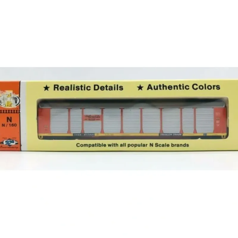 Here is Con-Cor 0001-603012 (01) Rio Grande Auto Rack Car #977037. Features plastic construction, rapido couplers, and plastic wheels.