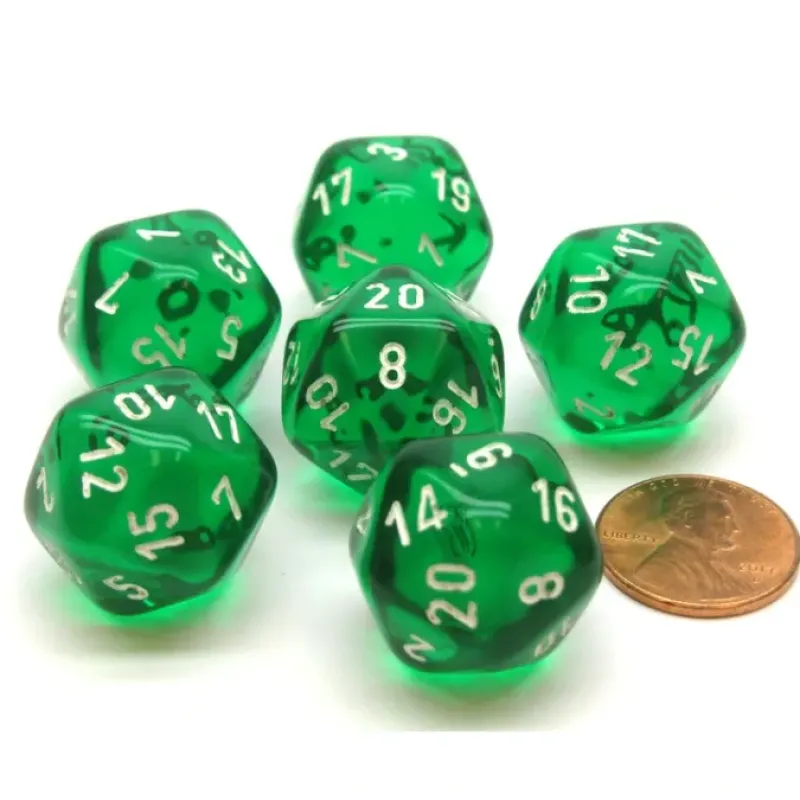 These twenty sided 20mm Translucent dice are numbered from 1 to 20 with numbers, not pips, and feel great in your hands. These dice are unique, good quality, and great for any dice game! The 6 and 9 have lines under them to help differentiate the two numbers.