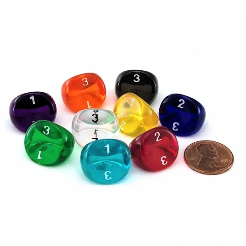These dice are some of the most unique available: not only are they number just 1 to 3 but they’re also triangular shaped with rounded ends. They’re not your standard polyhedral dice but you can put them to use however you need!