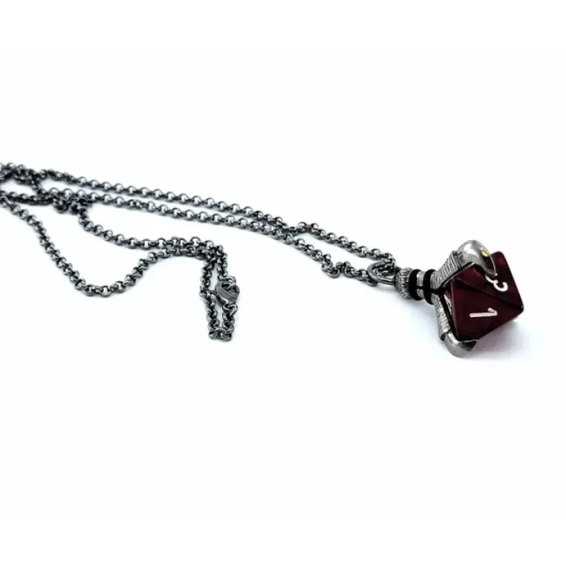 Made with quality metal chain links and a releasable clip located at the top of the chain, these necklaces are very durable and easy to wear. Plus, the die that is provided with the necklace is easily exchangeable with any standard sized D8! This pendant necklace is designed for use with 8-sided dice, so grab your collection of D8’s and style this necklace to match your favorite outfit!