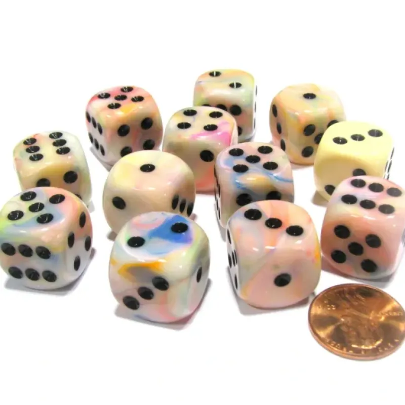 Dice>Festive 16mm D6 Chessex Dice Block (12 Dice) – Circus with Black Pips – Your Source for Gaming Essentials