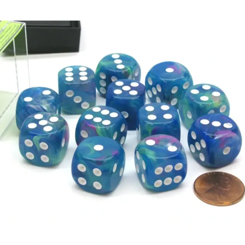 These Festive 16mm dice have a great look, feel, and roll. They are numbered 1 to 6 with traditional dice pips, spots, etched into the surface of the dice. Use these dice to play your favorite dice and board games or create your own game. 12 dice and 1 plastic display case included with purchase.