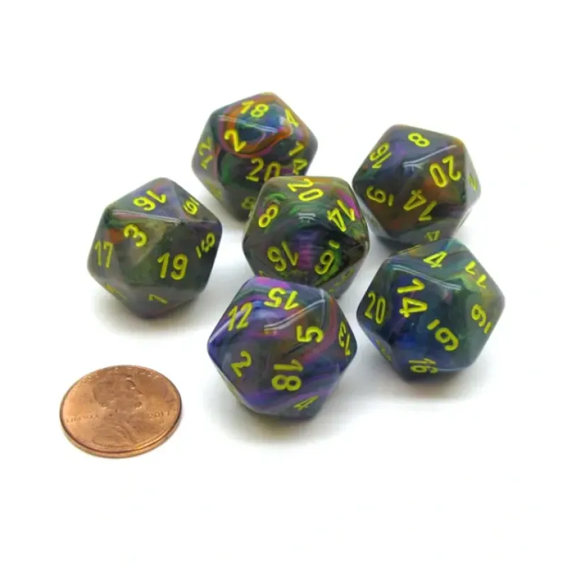 Dice>Festive 20 Sided D20 Chessex Dice, 6 Pieces – Rio with Yellow Numbers – Your Source for Gaming Essentials