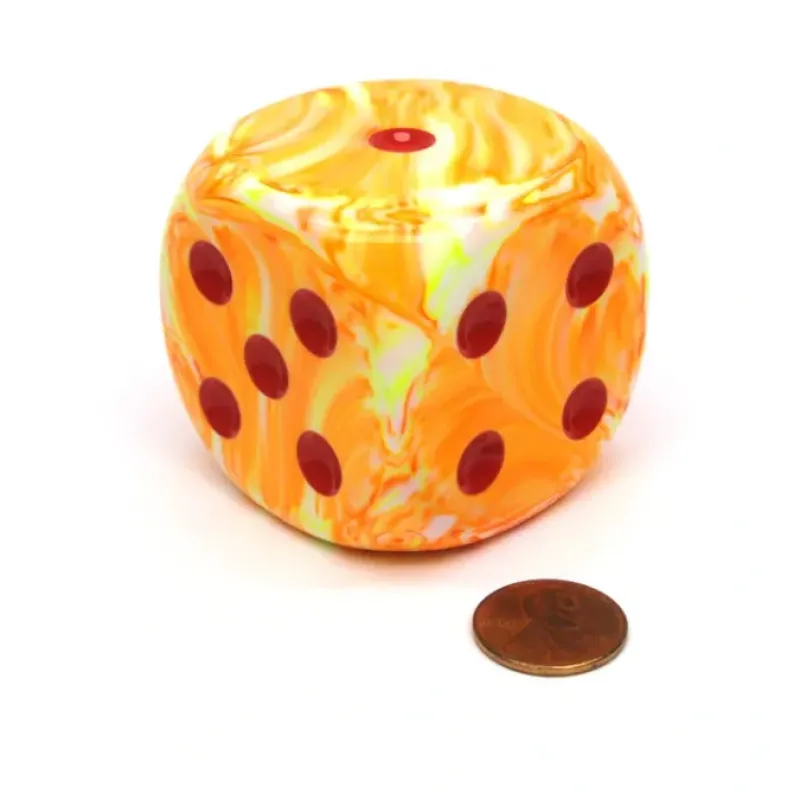 Dice>Festive 50mm Huge Large D6 Chessex Dice, 1 Piece - Sunburst with Red Pips - Your Source for Gaming Essentials