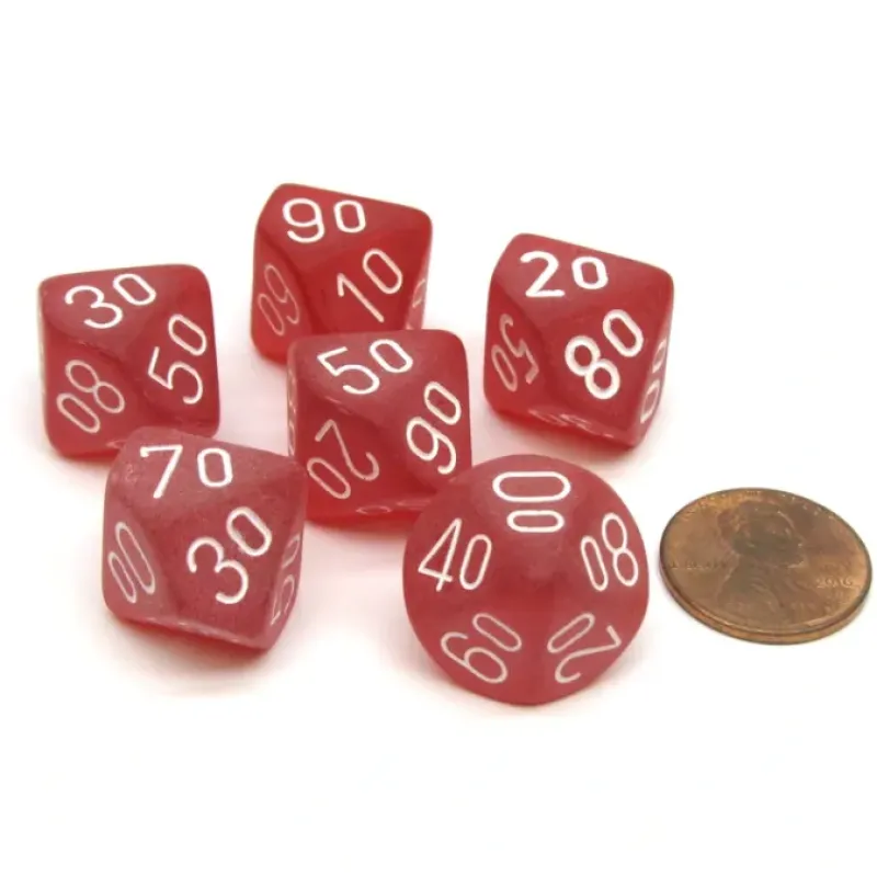 These 10-sided 16mm Frosted ‘Tens’ dice are numbered from 00 to 90 with numbers, not pips, and feel great in your hands. These dice are unique, good quality, and great for any dice game! Numbers are centered on each side. Sides read: 00, 10, 20, 30, 40, 50, 60, 70, 80, and 90.
