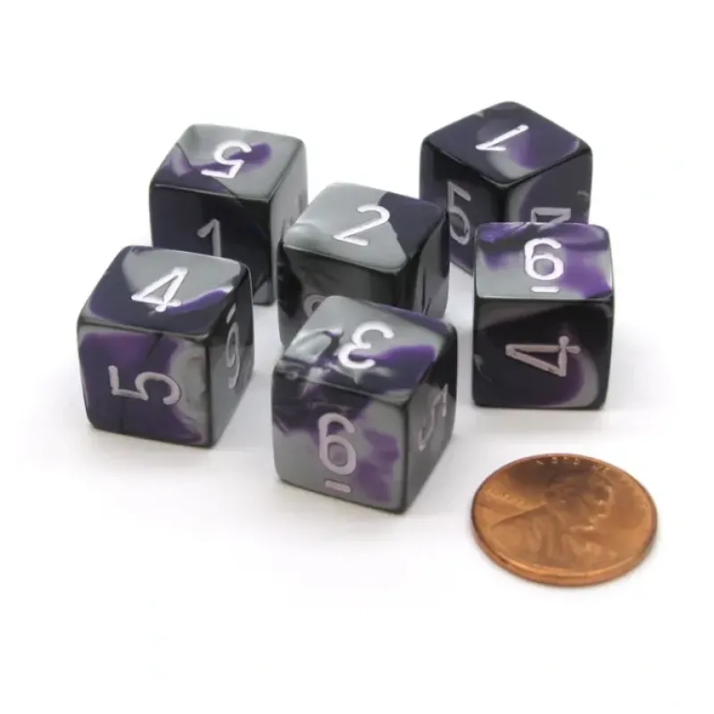 These 6-sided 15mm Gemini dice are numbered from one to six with numbers, not pips, and feel great in your hands. These dice are unique, good quality, and great for any dice game! Numbers are centered on each side and the 6 is underlined.