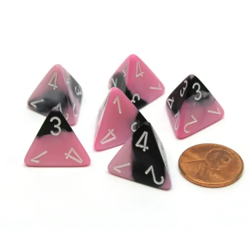 Dice>Gemini 18mm 4 Sided D4 Chessex Dice, 6 Pieces – Black-Pink with White – Your Source for Gaming Essentials