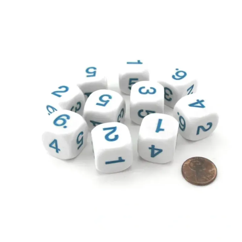 Dice>Pack of 10 D6 20mm Round Opaque Numbered 1 to 6 Dice – White with Blue Numbers – Your Source for Gaming Essentials