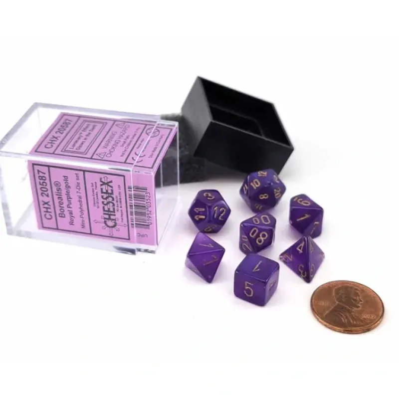 This polyhedral set contains one D20, one D12, two D10 (00-90 and 0-9), one D8, one D6, and one D4. Plastic display case is included.