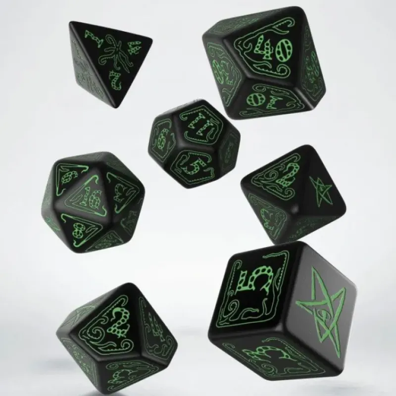 Imagine yourself, swimming in a deep ocean during night. The sea is cold and strangely calm… Suddenly, you see inhuman green shapes moving towards you ! Sensing danger, you swim in panic, trying to get away from them. Just when you think that those unspeakable sea horrors got you … you wake up. A set of black-green dice lies at your table and you are sure they weren’t there when you fell asleep…