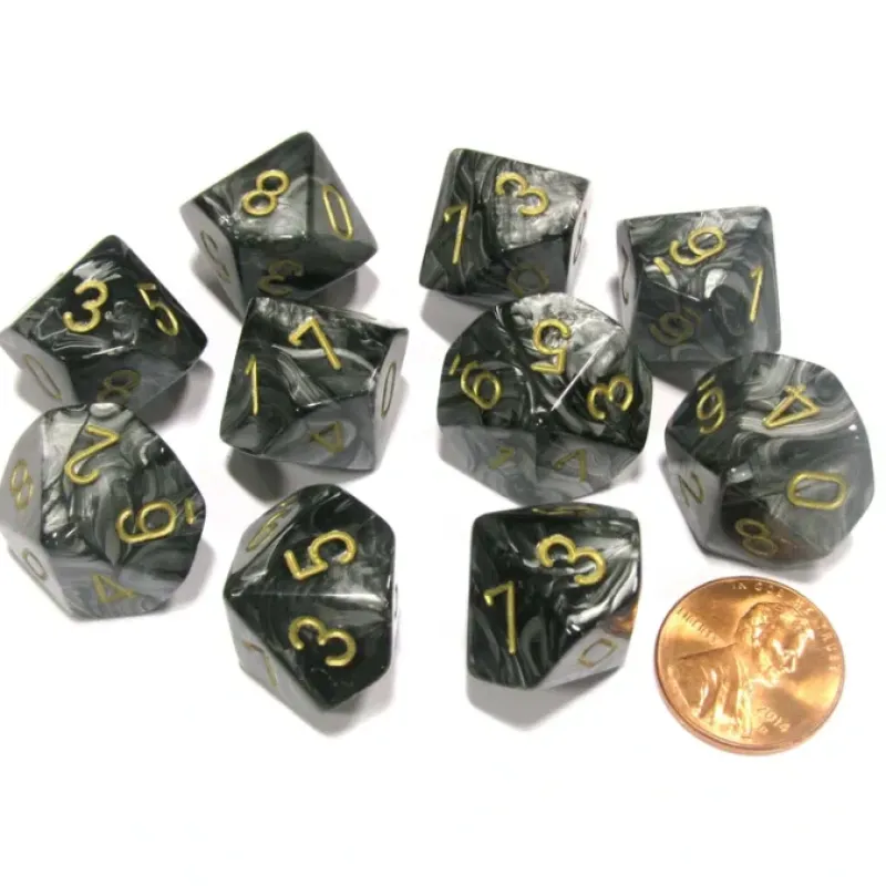 Dice>Set of 10 Chessex Lustrous D10 Dice – Black with Gold Numbers – Your Source for Gaming Essentials