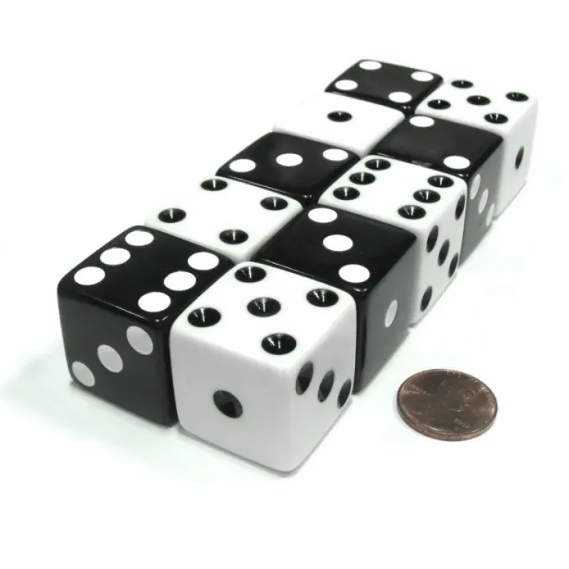Great for using in any type of board game that uses dice and traditional dice games. Receive 5 of white with black pip and 5 black with white pip dice. These dice look really neat together with the inversed colors.