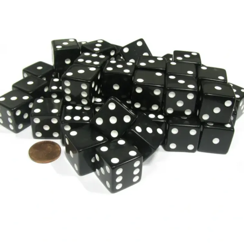 Dice>Set of 50 Large 19mm D6 Opaque Dice – Black with White Pips – Your Source for Gaming Essentials