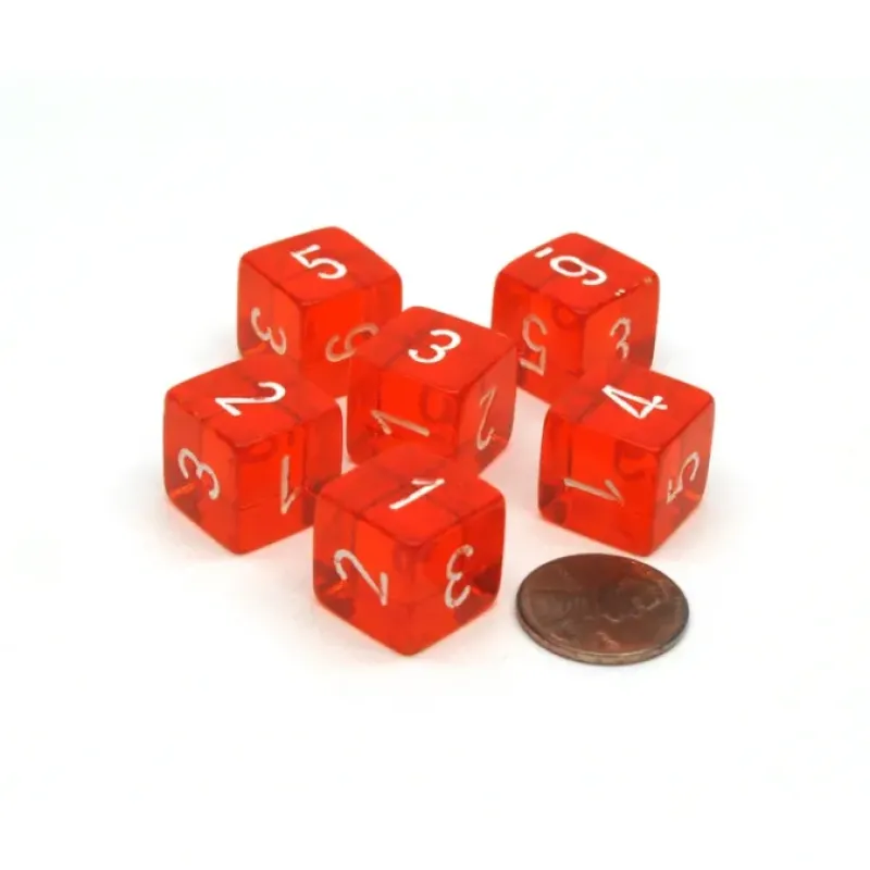 These 6-sided 15mm Translucent dice are numbered from one to six with numbers, not pips, and feel great in your hands. These dice are unique, good quality, and great for any dice game! Numbers are centered on each side and the 6 is underlined.