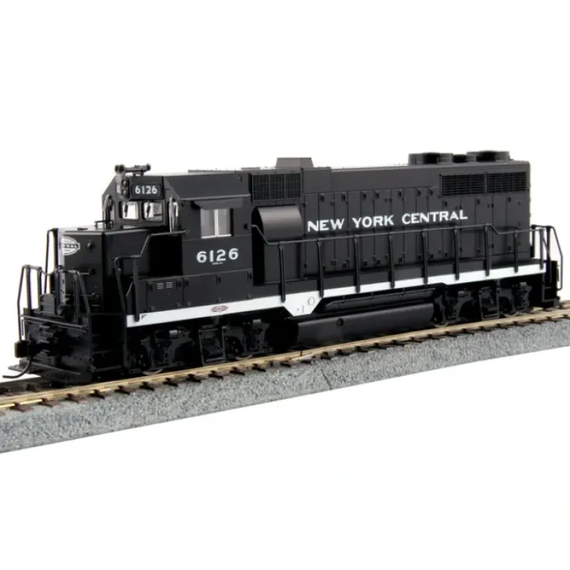 This is Kato 3730241 HO New York Central EMD GP35 Phase Ia w/ESU DCC #6126. Features: Locomotive feature directional Golden White LED headlights., Roadname specific Dynamic Brake or Non-Dynamic Brake hatches: NYC units- Non-Dynamic brakes, All wheel electrical pickup from blackened metal wheels., Comes with pre-installed ESU DCC (motor control only – non sound) and all detail parts, handrails and grab irons already installed.