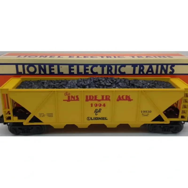 Here is a Lionel 6-19930 O Gauge Lionel Railroader Club 4-Bay Hopper with Load #19930. It features a removable load, plastic knuckle couplers, metal wheels & a durable plastic construction.