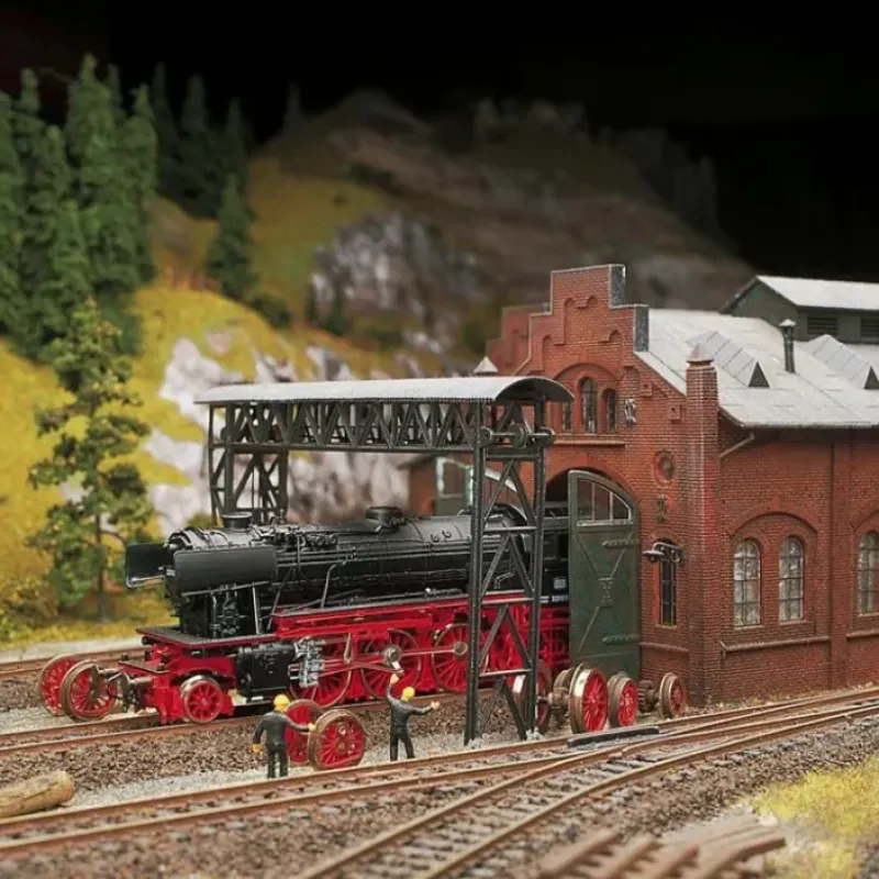This is Faller 120164 Overhead crane. This very typical railway model can not only be used in depots, but wherever something has to be lifted and loaded. A gantry crane can be built with the parts of this construction kit which spans over two or three tracks.
