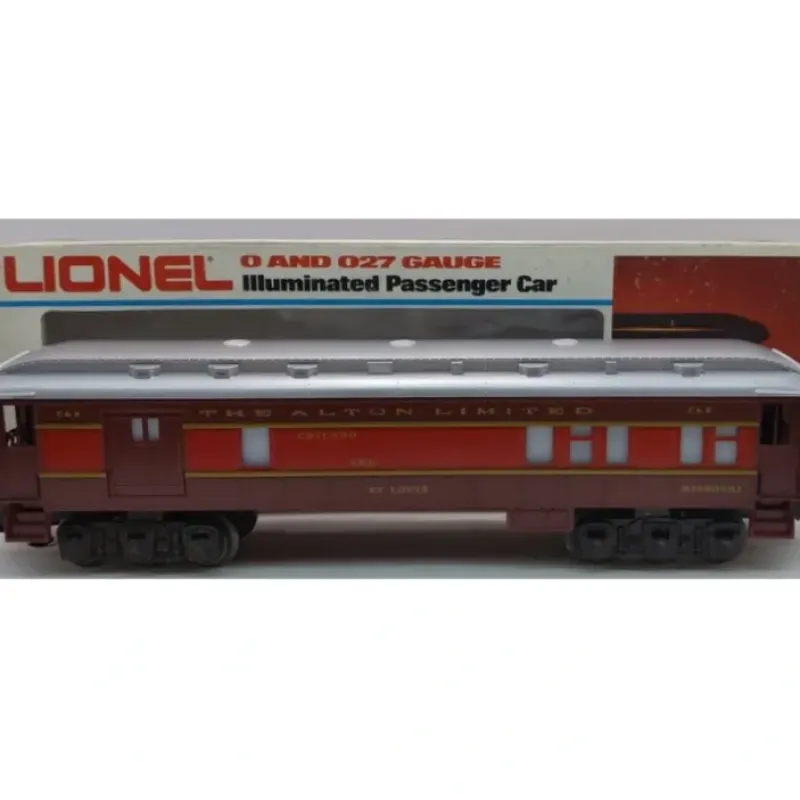 Here is a Lionel 6-9555 O Gauge Chicago & Alton “Missouri” Combination Car from 1981. This car was part of the Alton Limited Red Train from that period. This car has an illuminated interior, translucent window strips, die-cast 6-wheel metal trucks, die-cast metal operating knuckle couplers, and metal wheels and axles, and is 12 inches long.