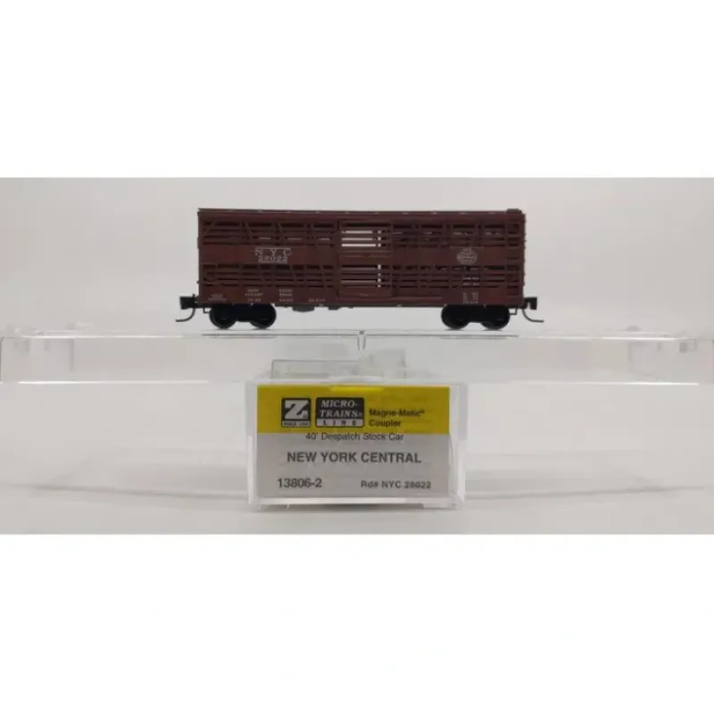 Here is a Micro-Trains 13806-2 Z Scale New York Central Stock Car # 28022. This car features knuckle couplers, plastic wheels and body construction.