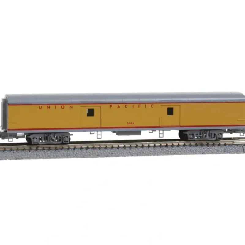 Here is a MicroTrains 99400064 Z Union Pacific Pullman-Standard Smoothside 70′ Baggage Car 3-Car Runner Pack. Each measures approximately Each measures approximately 4 inches in length. Please see my pictures for additional features.