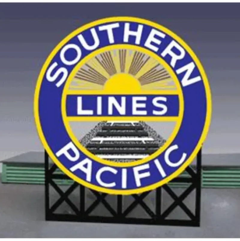 This is a Miller Engineering 7072 HO/N Scales Southern Pacific Animated Billboard Sign. Approx. 2.2 inches high x 1.8 inches wide. Kit includes: Electroluminescence sign lamp Billboard stand (supports sold separately) Power supply (requires 3 AAA batteries – not included) Complete instructions. Runs on 3 AAA batteries or 4.5v DC wall adapter power supply (sold separately). This sign has a second set of contacts on the back side so the lower part can be trimmed off and the remaining circle logo can be flush mounted on a building.