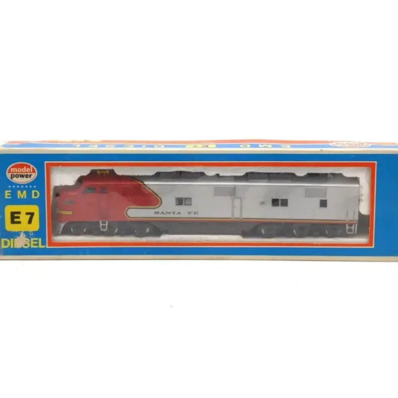 Here is a Model Power 910 HO Scale Atchison Topeka Santa Fe E7 Diesel Locomotive. Features include a powerful motor, a plastic trucks, metal wheels, and horn hook couplers.