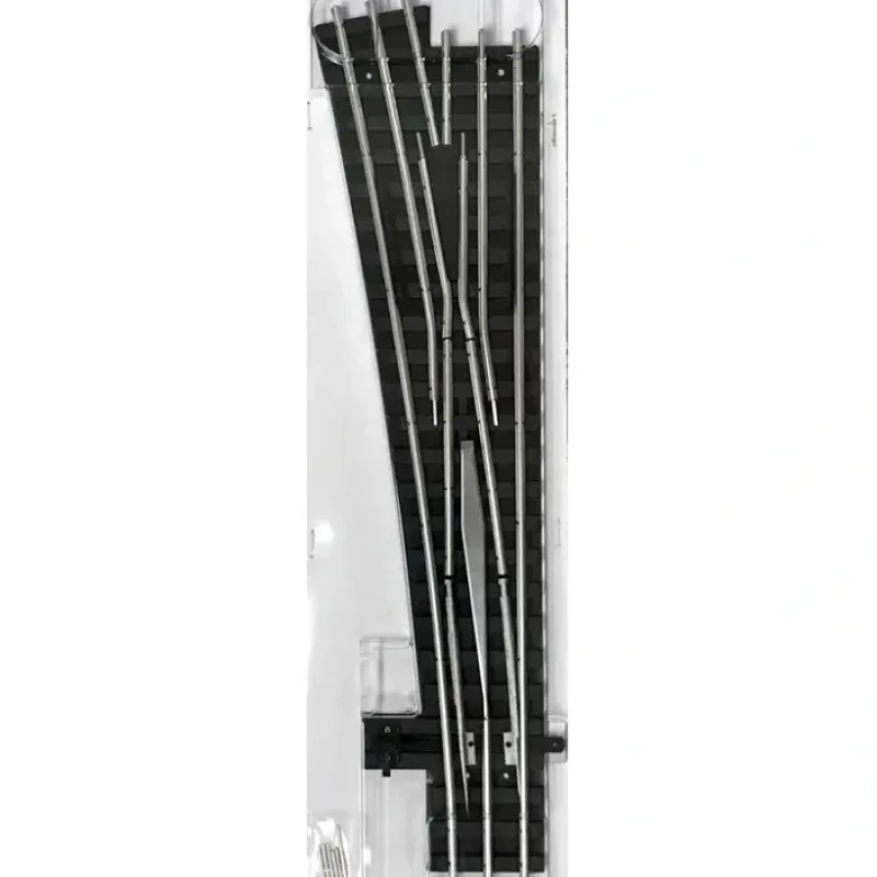 Use a GarGraves 100 Radius switch for high speed mainline applications such as single crossovers between main line tracks. Transition sets are available to bring your spur track back to parallel to the main line at 3.5, 4.2, 4.5 and 5 centers. The switch is 16 long. Right and left hand switches are available.
