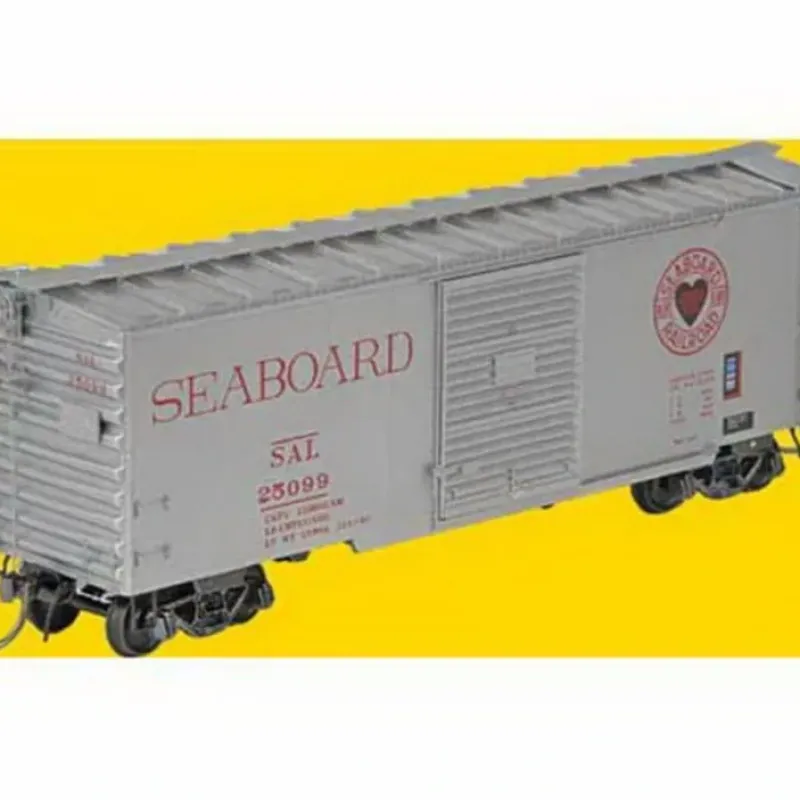 This is a Kadee 5121 HO Scale Pullman-Standard 40′ PS-1 Boxcar Seaboard Air Line #25099 (silver).