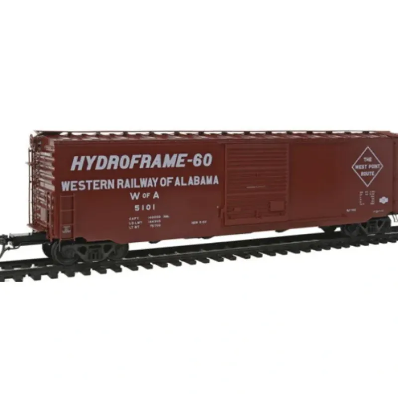 This is a Kadee 6373 HO Scale PS-1 50′ Boxcar with 9′ Door – Ready to Run Western Railway of Alabama #5101 (1963 Scheme, Boxcar Red, Hydroframe).