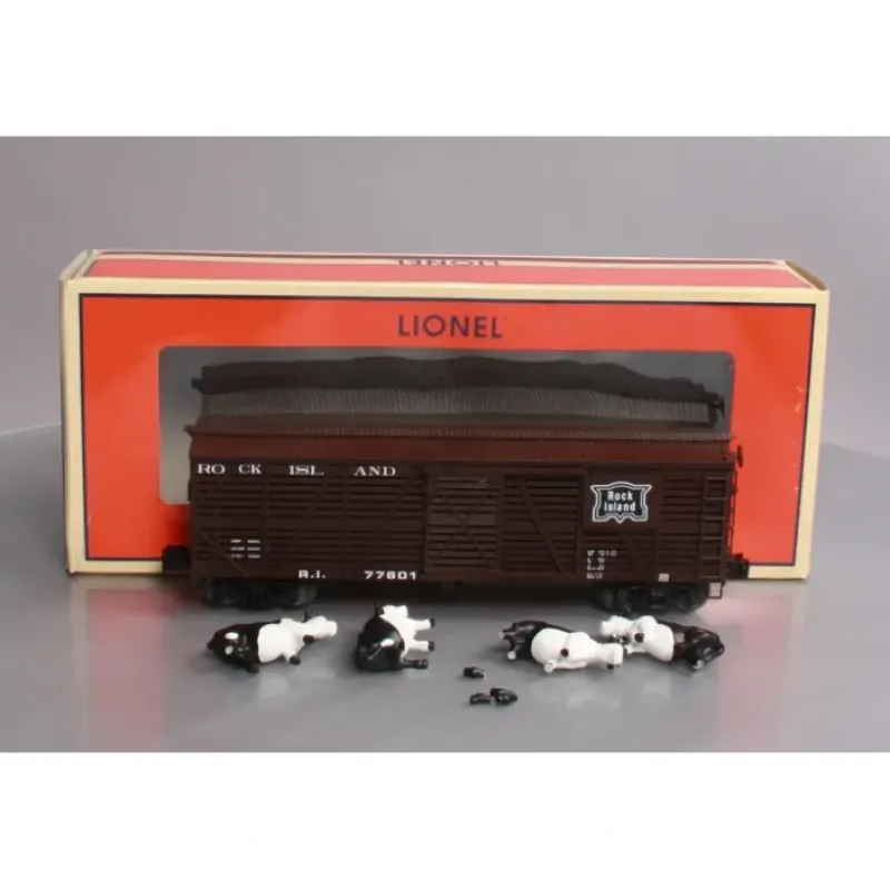 Here is a Lionel 6-27884 O Gauge Rock Island ACF 40-Ton Stock Car #77601 with Cows.