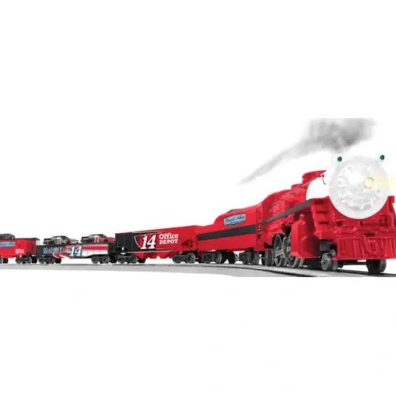 This is Lionel 7-11424 O PP Tony Stewart #14 NASCAR Train Set. Calling all NASCAR fans! Lionel introduces six exciting new train sets, featuring the biggest stars in motorsports. Each set is designed so fans can show their support of their favorite driver. The gondola car holds two 1:64 scale die-cast of the drivers two top paint schemes. From the authentic team and sponsor decoration to the real air whistle and puffing smoke, these sets bring the speed and excitement of NASCAR to your layout!