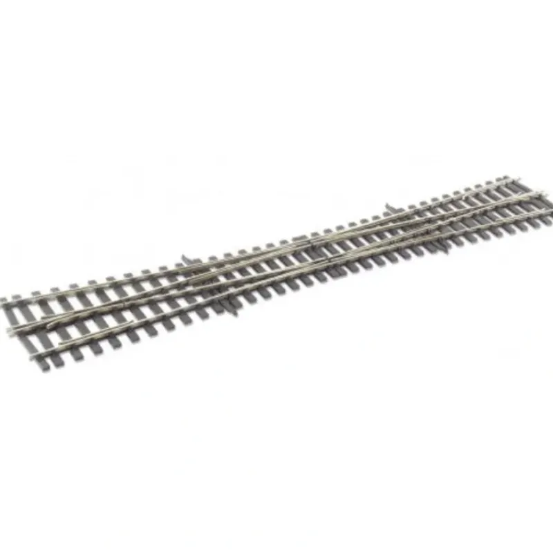 This is a Peco SL-E790BH O Double Slip Code 124 w/ Electrofrog, 8 Degree. Slip turnouts combine a diamond crossing with a turnout, allowing a train to pass onto either of the diverging tracks. These points were usually used in locations where many tracks converged and can prove useful on model railway layouts to reduce the length occupied by junctions. Code 124 bullhead rail. Length 584mm (23in). Crossing angle 8 degrees. Polarity changeover switching is required to correctly energize the crossings for the route set.