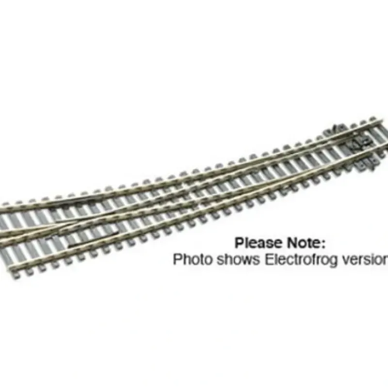 This is a Peco SL-E86 HO/OO Code 100 60″ Radius Electrofrog Curved Right Hand Switch Turnout.