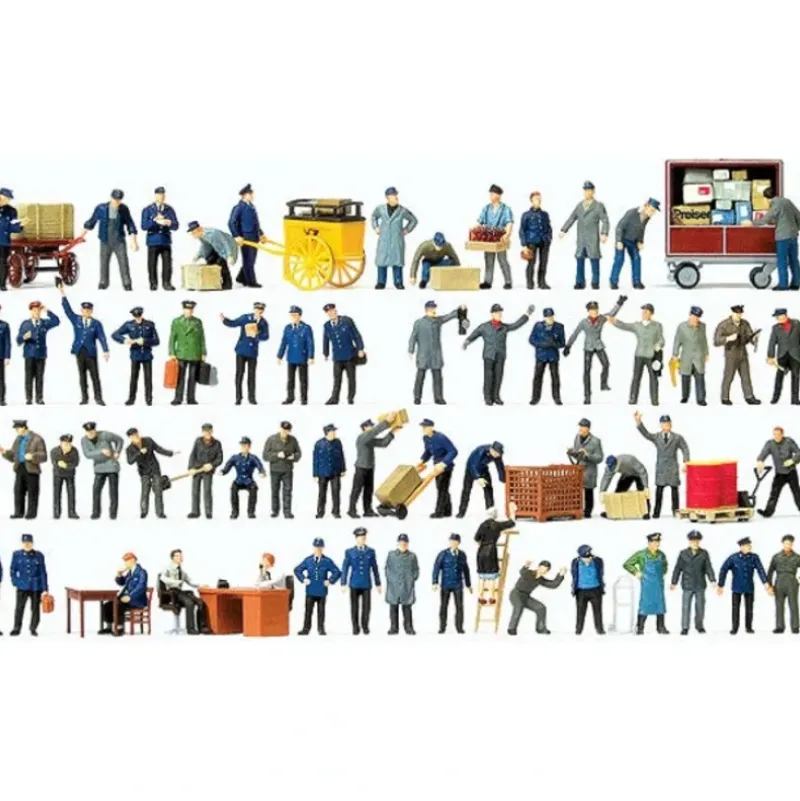 This is a Preiser Kg 13004 HO Scale Working People Assorted Working People pkg(60), Early Era III Painted set includes German railroad personnel, delivery men, postal service employees, office workers and accessories.