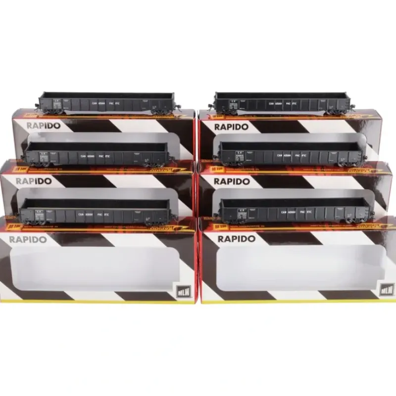 Here is a Rapido Trains 50002 HO Canadian Pacific 52′ 6″ Canadian Mill Gondola (6) Set #1. Features include plastic construction, plastic trucks, knuckle couplers and metal wheels & axles.