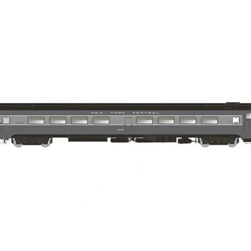 This is a Rapido Trains 503041 N Scale New York Central Panorama Line(TM) Cafe-Bar-Lounge, No Skirting, Fixed Steps – Ready to Run #10662 (Post-1948 Scheme, 2-Tone Gray). The Cafe-Bar-Lounge is similar to cars bought or rebuilt by most railroads to serve those customers who got the munchies, but weren’t in the mood for a fancy meal in the dining car. Your passengers will enjoy this model’s contoured seats and its detailed take-out counter with individual display shelves for sandwiches, pizzas, and anything else your commissary cares to whip up. Features include: Super-detailed underbody,Body-mounted Micro-Trains couplers,Fixed steps or partial skirts, as appropriate,All air, steam and electrical lines represented,Insulated 36 metal wheelsets,Battery-powered interior lighting,Flush windows with painted gaskets and shades,Full interior detail including armrests and headrests,Diaphragms with etched brass end gates,Factory-applied painted metal roof grab irons,Multiple car names and/or numbers per paint scheme,Super-detailed 41-N-11 or 41-BNO-11 trucks as appropriate,Will operate smoothly on curves down to 9-3/4 radius.