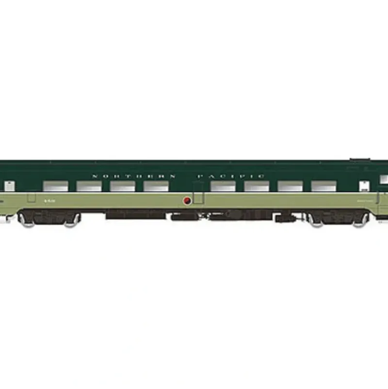 This is a Rapido Trains 503045 N Scale Northern Pacific Panorama Line(TM) Cafe-Bar-Lounge w/Partial Skirting – Ready to Run #452 (2-Tone Green). The Cafe-Bar-Lounge is similar to cars bought or rebuilt by most railroads to serve those customers who got the munchies, but weren’t in the mood for a fancy meal in the dining car. Your passengers will enjoy this model’s contoured seats and its detailed take-out counter with individual display shelves for sandwiches, pizzas, and anything else your commissary cares to whip up. Features include: Super-detailed underbody,Body-mounted Micro-Trains couplers,Fixed steps or partial skirts, as appropriate,All air, steam and electrical lines represented,Insulated 36 metal wheelsets,Battery-powered interior lighting,Flush windows with painted gaskets and shades,Full interior detail including armrests and headrests,Diaphragms with etched brass end gates,Factory-applied painted metal roof grab irons,Multiple car names and/or numbers per paint scheme,Super-detailed 41-N-11 or 41-BNO-11 trucks as appropriate,Will operate smoothly on curves down to 9-3/4 radius.