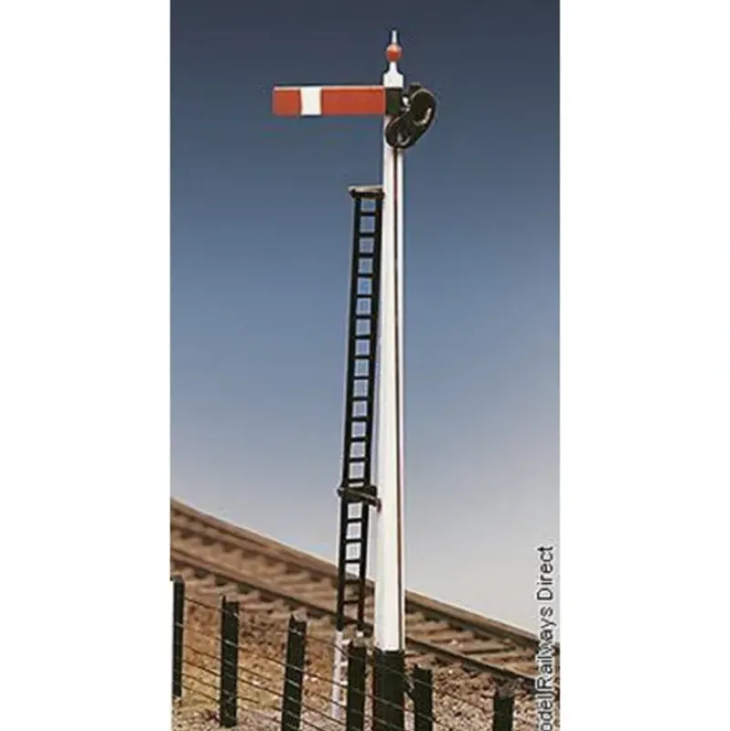 This is Ratio 460 * HO GWR HOME. GWR Home. Signals are crucial to the running of a safe and efficient railway. The first signals were operated by hand by a signal ‘policeman’. The introduction of signal boxes gave central control using rods and wires, and later on, point and signal interlocking. When combined with the telegraph bell code system and single-line block tokens, signal boxes finally were able to work together to operate trains more safely. Today, semaphone signals and signal boxes have all but disappeared, but are still used in Cornwall, a few other lines the Settle to Carlisle and, of course, preserved railways. Apart from the way they look, semaphone signals differ from modern signals in two ways. The distant signal is usually seperate from any signal, being placed about a quarter mile ahead of the home signal. This warns trains in time to stop without the need to run miles of wire to the previous signals. The second difference is that they are normally at ‘danger’ except for when a train is cleared, whilst modern signals are green unless the line ahead is occupied. Ratio’Quick Assembly’ signals reflect those used by railway companies from the 1930’s onwards. Our quick assembly kits allow you to easily make home, distant, junction and bracket signals. They include signal operating wire and lever. You may also wish to consider using our advanced construction signal kits.