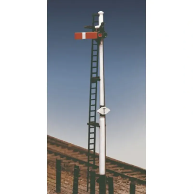 Ratio ‘Quick Assembly’ signals reflect those used by railway companies from the 1930’s onwards. Our quick assembly kits allow you to easily make home, distant, junction and bracket signals. They include signal operating wire and lever. Ladders, lever and operating wire included. The picture shows the kit made up and posed in a setting.