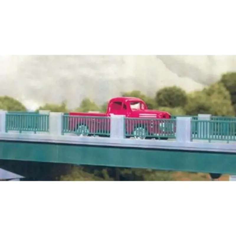 This is a Rix Products 628-124 HO Scale 50′ Wrought Iron/Concrete Highway Railings (Pack of 4).