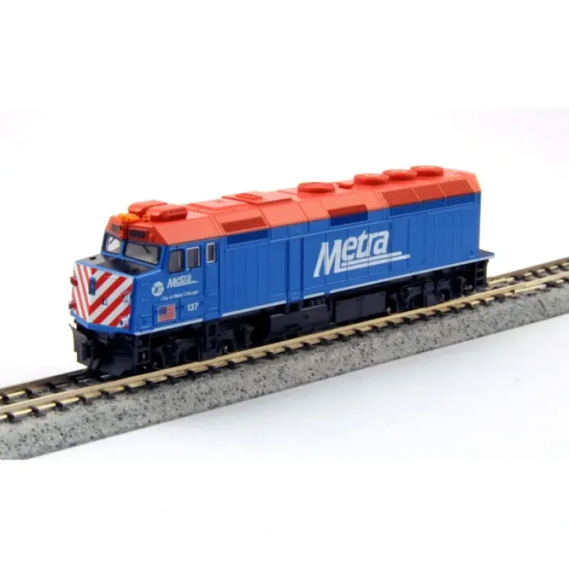 This is a Kato 176-9101 N Scale Chicago Metra F40PH Diesel Locomotive #137. The EMD F40PH is synonymous with the Amtrak era of American passenger trains. Although it has been retired from Amtrak service, it operated for over 20 years. It continues to be the motive power for commuter railroads all over the United States, including the Chicago Metra. Over 400 F40PH locomotives have been manufactured by EMD in various configurations, with the Chicago Metra owning the largest number of the surviving units and operating them to this day, alongside the newer MPI built MP36PH.