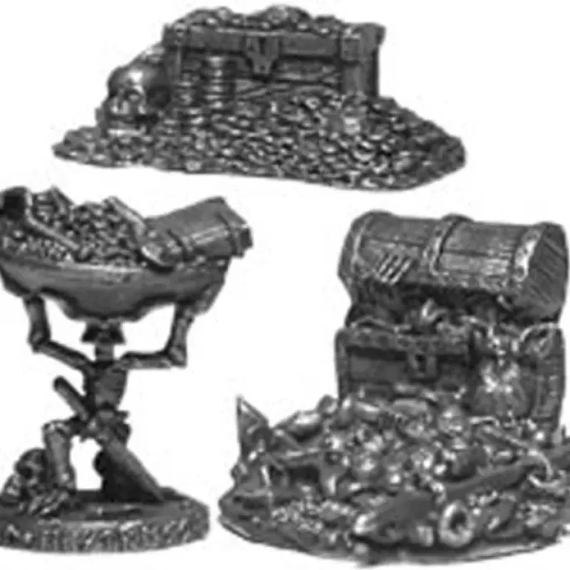 Includes 3 separate figures, each fully assembled: 2 different treasure troves, and a skeleton hauling a treasure pile.