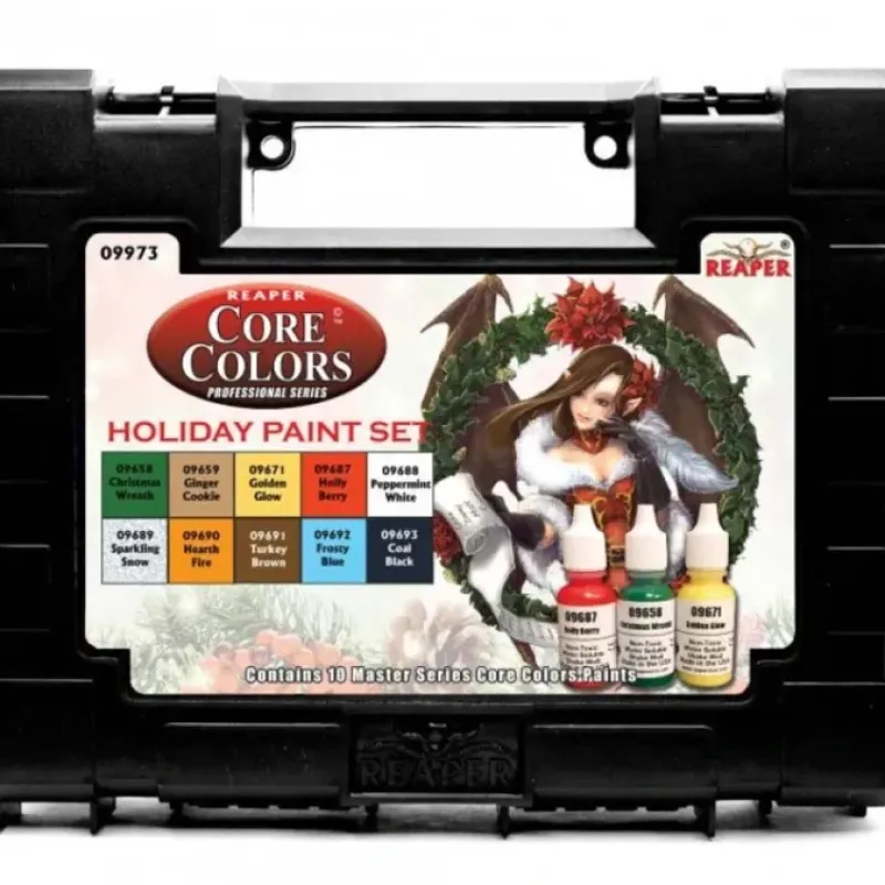 This special edition Holiday Paint Set comes with 10 bottles of Reaper Master Series Core Colors! Seven of these colors are only available in this set, while the other three colors have only been available as promotional paints. Now you can get them all in one spot! This special edition paint set is only available this holiday season. Makes a great gift for your favorite mini painter!