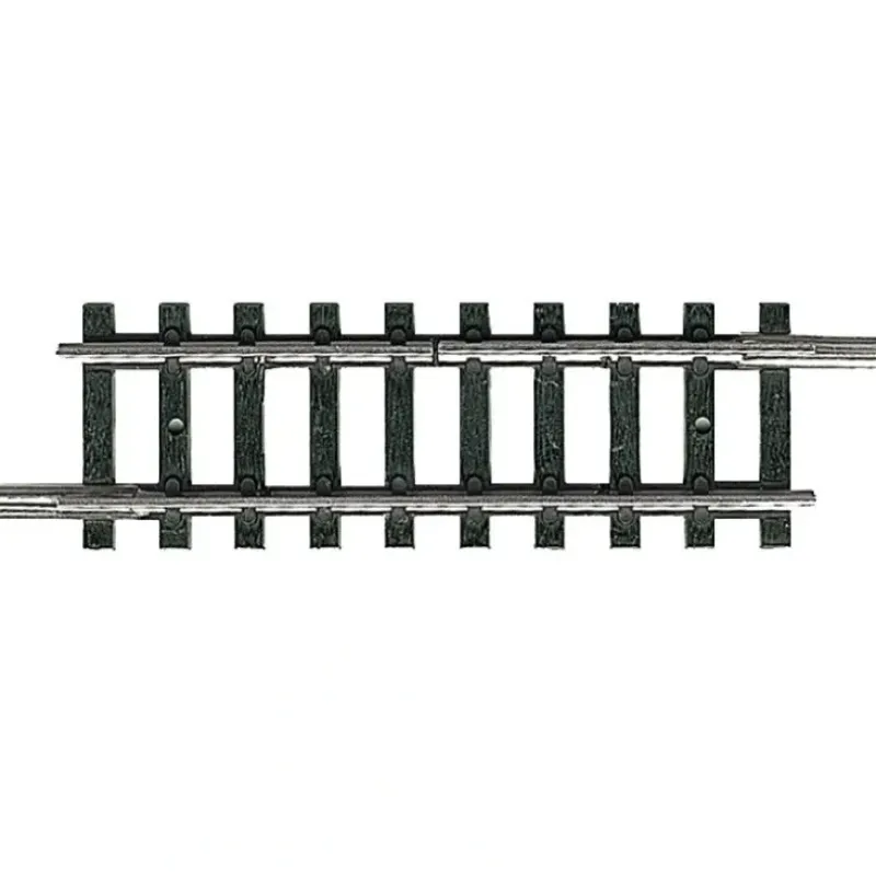 This is a Trix 14982 N Scale Straight Isolation Track 50.0mm / 1-31/32. Model: 50.0 mm / 1-31/32 >. Gapped in one rail for electrical isolation.