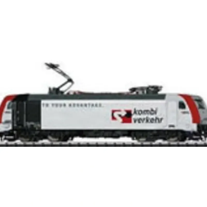 This is a Trix 16902 N Scale German Electric Locomotive Class 185.5 of the Kombiverkehr Company (Sound Decoder). Model: The Trix 16902 electric locomotive class 185.5 is equipped with a 14-pin digital receptacle and 5-pole motor with a flywheel. All axles are powered and fitted witht traction tires. The LED headlights and red marker lights change with the direction of travel, they can be turned off with bridge plugs. The locomotive has close coupler mechanisms. Engineer’s cab lighting and long-distance headlights are installed in the locomotive and can be activated with the 66840 decoder. Length over the buffers 118 mm / 4-5/8.Prototype: Class 185.5 electric locomotive in the version Kombiverkehr / Combination Service painted and lettered for the railroad firm Lokomotion Gesellschaft Schienentraktion GmbH. B-B wheel arrangement. Use: Freight service.